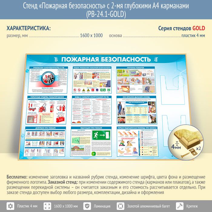 Стенд «Пожарная безопасность» с 2-мя глубокими А4 карманами (PB-24.1-GOLD) в Тюмени купить