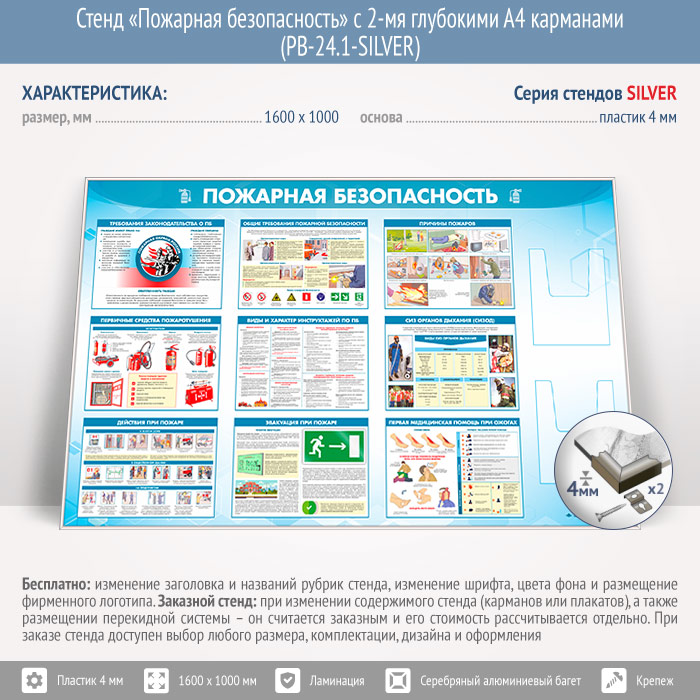 Стенд «Пожарная безопасность» с 2-мя глубокими А4 карманами (PB-24.1-SILVER) в Тюмени купить