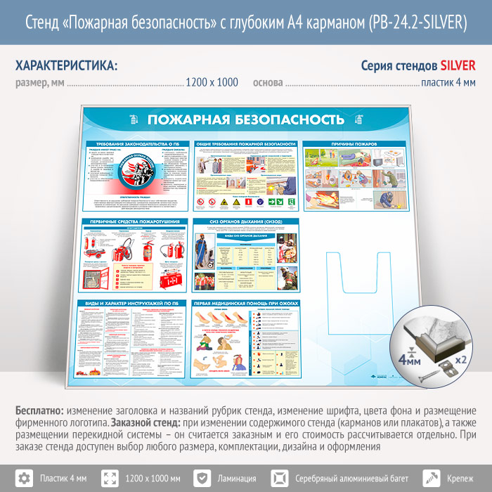 Стенд «Пожарная безопасность» с глубоким А4 карманом (PB-24.2-SILVER) в Тюмени купить