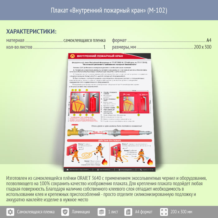 Плакат «Внутренний пожарный кран» (М-103, самоклеящаяся пленка, А4, 1 лист) в Тюмени купить
