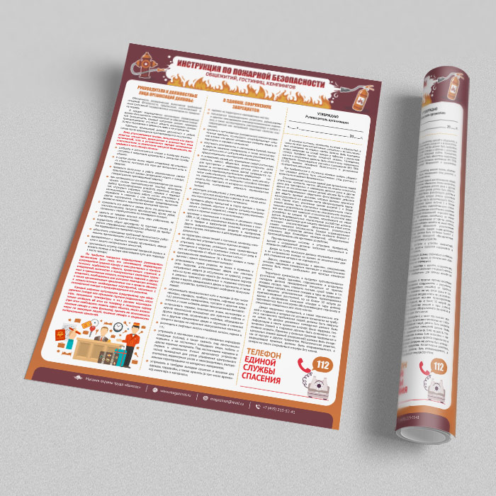 Плакат «Инструкция по пожарной безопасности общежитий, гостиниц, кемпингов» (М-19, ламинированная бумага, А2, 1 лист) в Тюмени купить