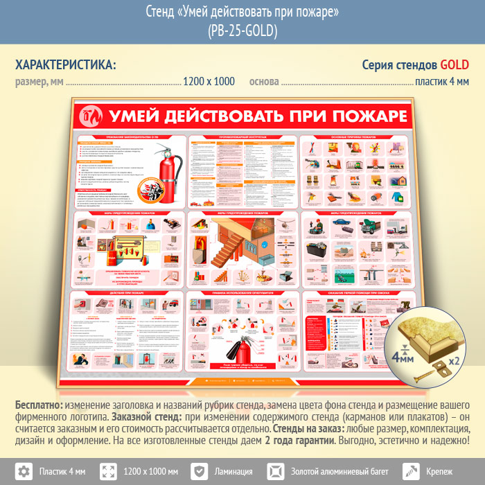 Стенд «Умей действовать при пожаре» (PB-25-GOLD) в Тюмени купить