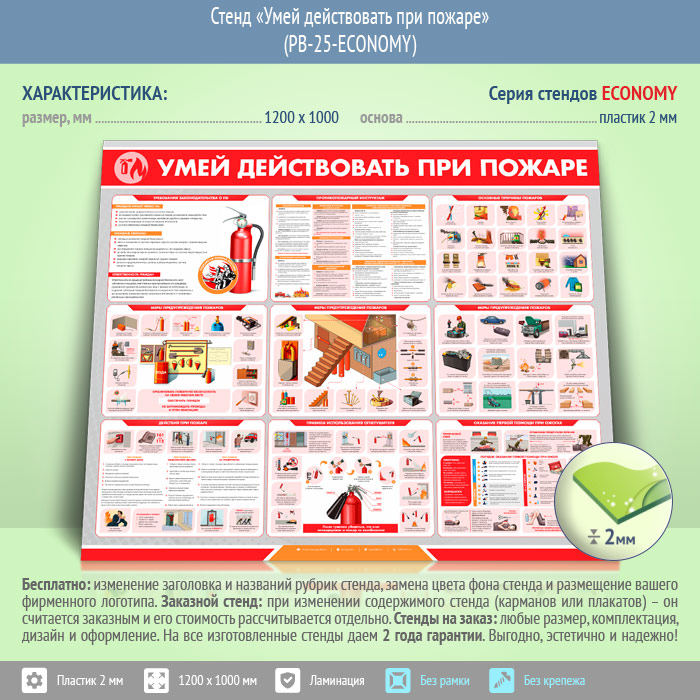Стенд «Умей действовать при пожаре» (PB-25-ECONOMY) в Тюмени купить