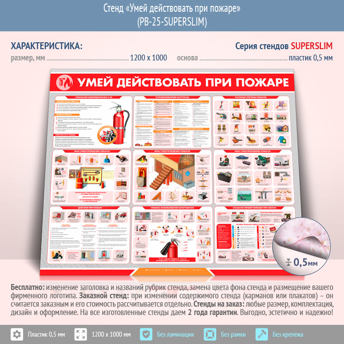 Стенд «Умей действовать при пожаре» (PB-25-SUPERSLIM) в Тюмени купить