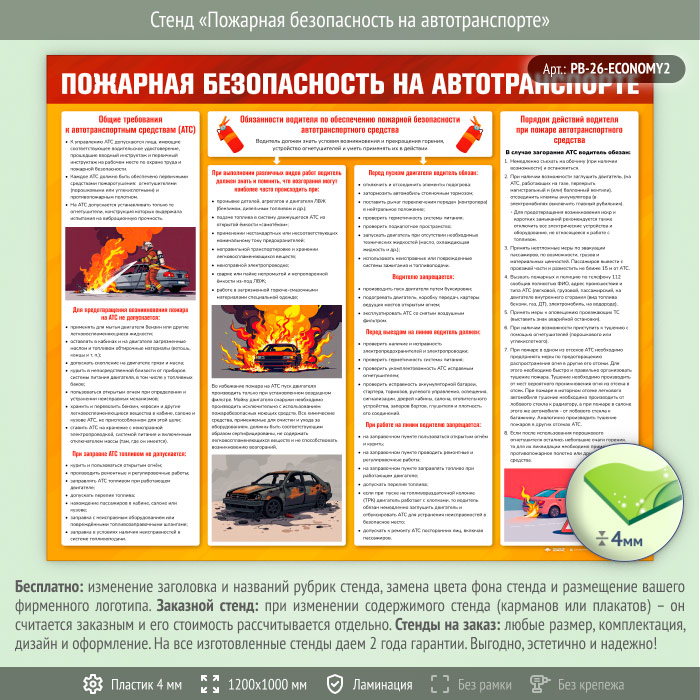Стенд «Пожарная безопасность на автотранспорте» (PB-26-ECONOMY2) в Тюмени купить