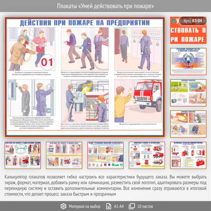 Плакаты «Умей действовать при пожаре» (ВЗ-04, 10 листов) в Тюмени купить