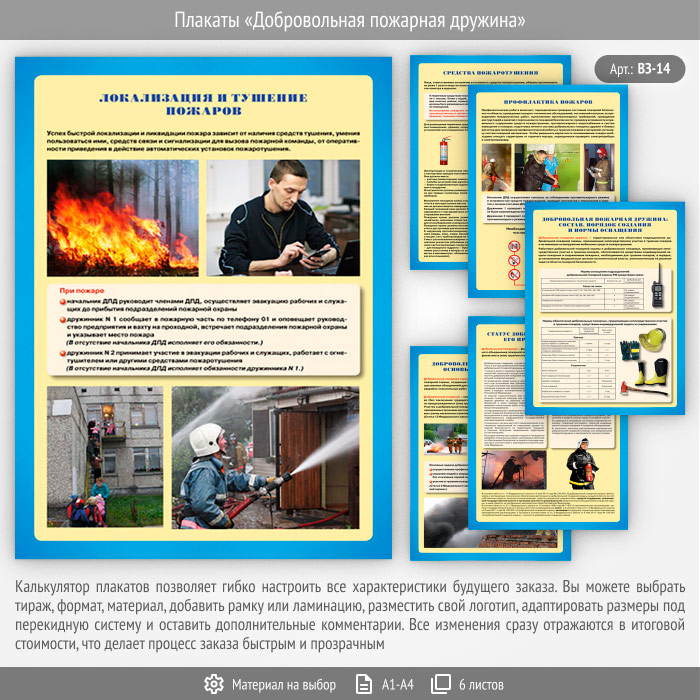 Плакаты «Добровольная пожарная дружина» (ВЗ-14, 6 листов) в Тюмени купить