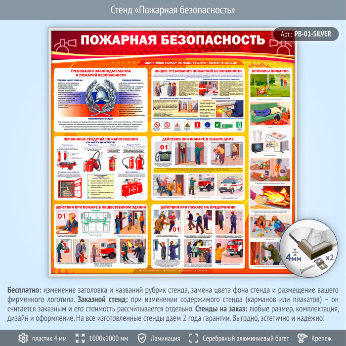 Стенд «Пожарная безопасность» (PB-01-SILVER) в Тюмени купить