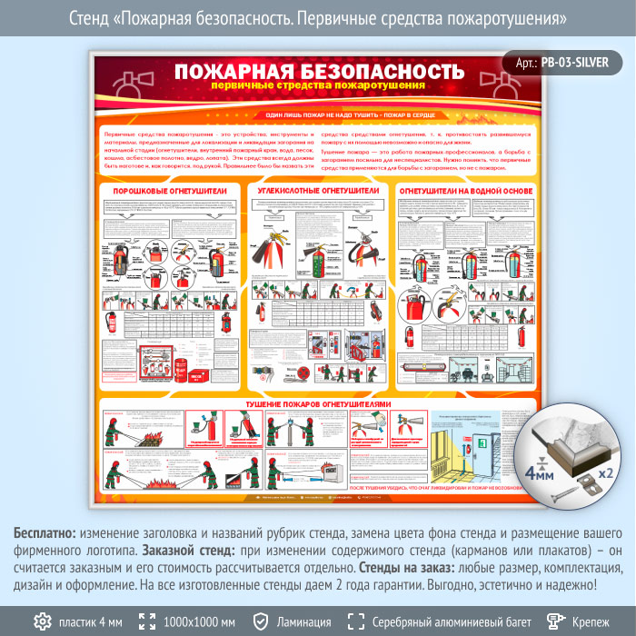 Стенд «Пожарная безопасность. Первичные средства пожаротушения» (PB-03-SILVER) в Тюмени купить