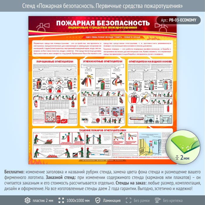 Стенд «Пожарная безопасность. Первичные средства пожаротушения» (PB-03-ECONOMY) в Тюмени купить