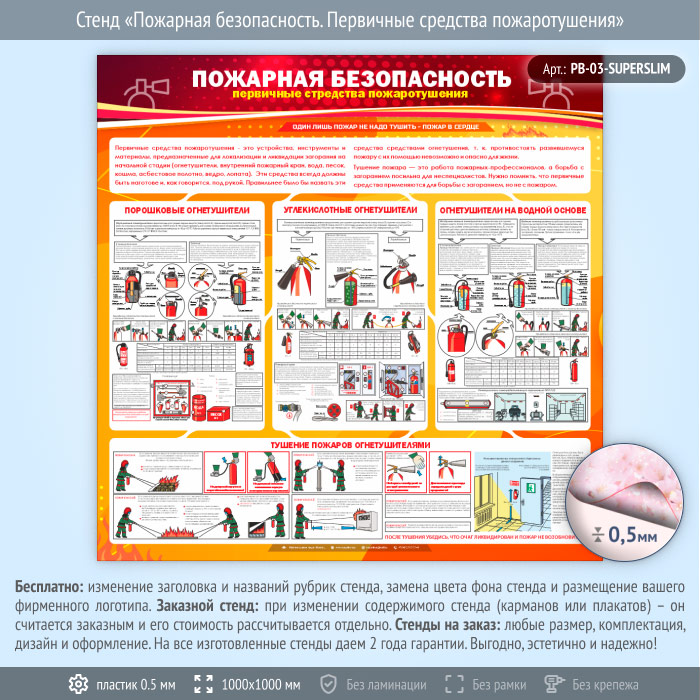 Стенд «Пожарная безопасность. Первичные средства пожаротушения» (PB-03-SUPERSLIM) в Тюмени купить