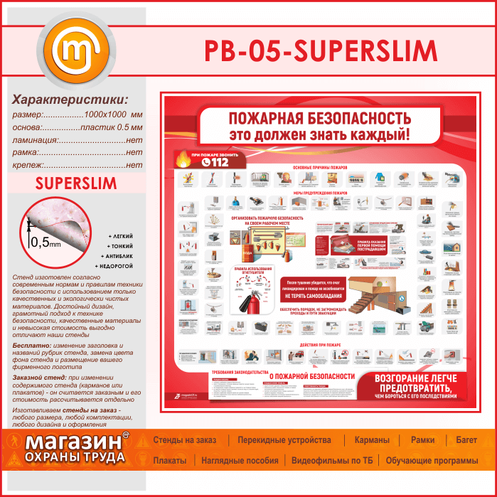 Стенд «Пожарная безопасность. Это должен знать каждый» (PB-05-SUPERSLIM) в Тюмени купить