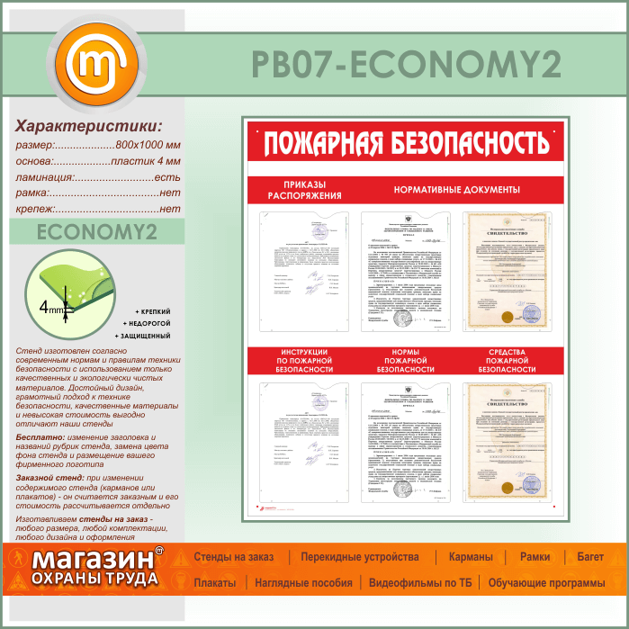Стенд «Пожарная безопасность» с 6 карманами (PB-07-ECONOMY2) в Тюмени купить