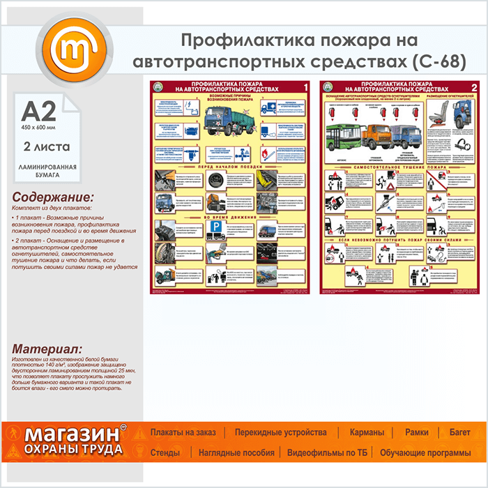 Плакаты «Профилактика пожара на автотранспортных средствах» (С-68, ламинированная бумага, А2, 2 листа) в Тюмени купить