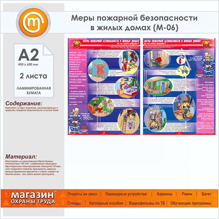 Плакаты «Меры пожарной безопасности в жилых домах» (М-06, ламинированная бумага, А2, 2 листа) в Тюмени купить