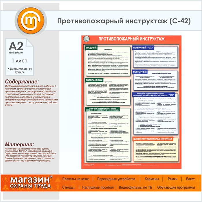 Плакат «Противопожарный инструктаж» (С-42, ламинированная бумага, А2, 1 лист) в Тюмени купить