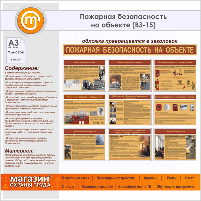 Плакаты «Пожарная безопасность на объекте» (ВЗ-15, бумага, А3, 10 листов) в Тюмени купить