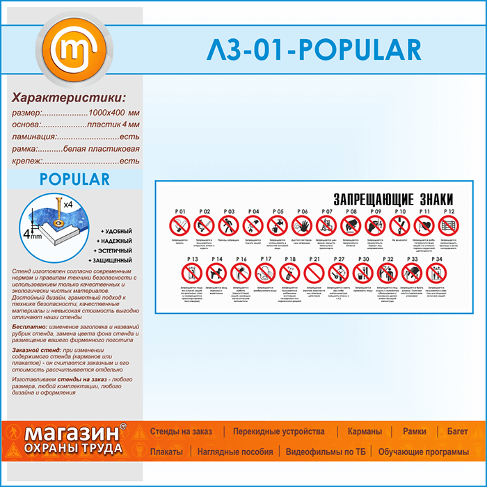 Стенд «Запрещающие знаки» (LZ-01-POPULAR)