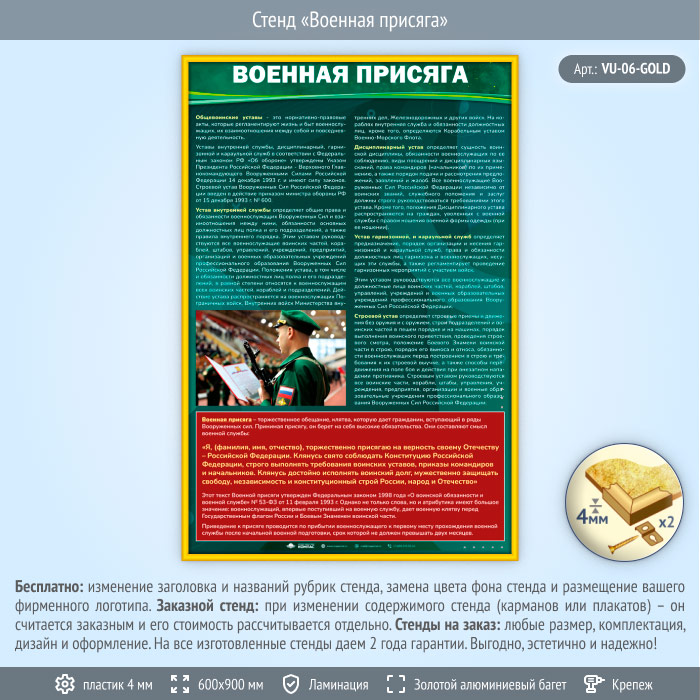 Стенд «Военная присяга» (VU-06-GOLD) в Тюмени купить