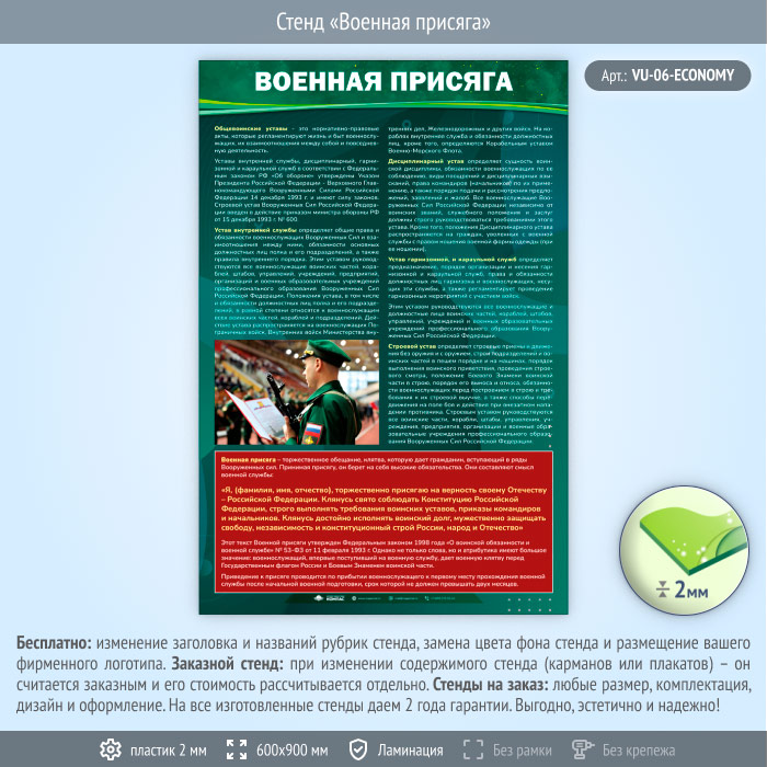 Стенд «Военная присяга» (VU-06-ECONOMY) в Тюмени купить