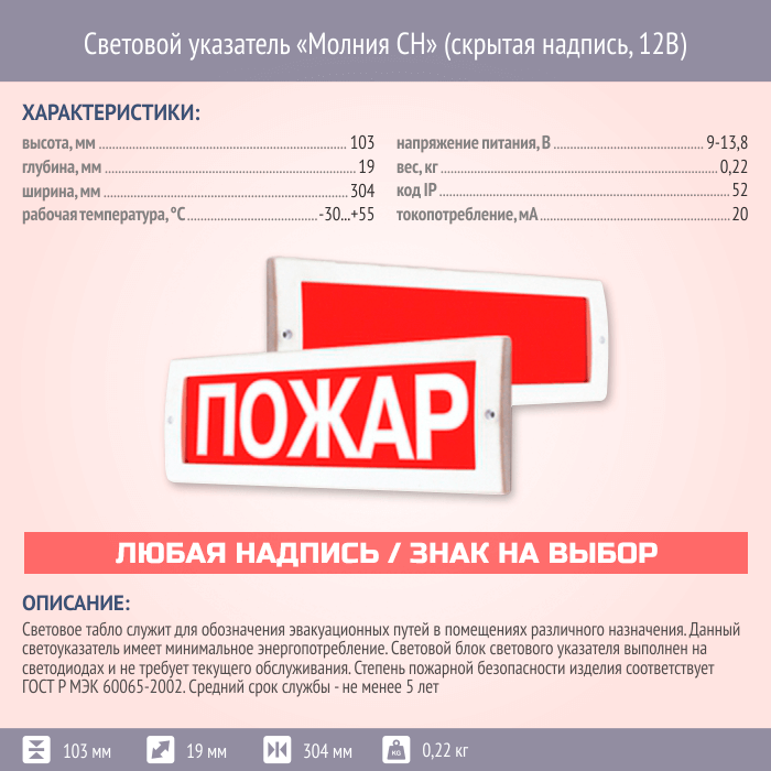 Световой указатель Молния СН (скрытая надпись, 12В) в Тюмени купить