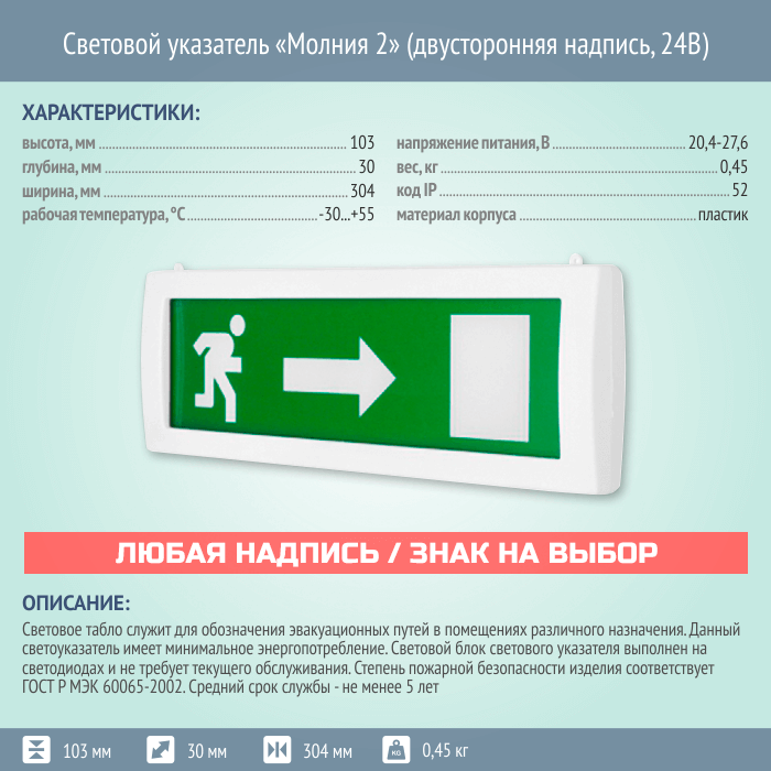 Световой указатель Молния 2 (двусторонняя надпись, 24В) в Тюмени купить