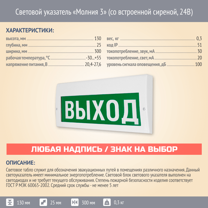 Световой указатель Молния 3 (со встроенной сиреной, 24В) в Тюмени купить