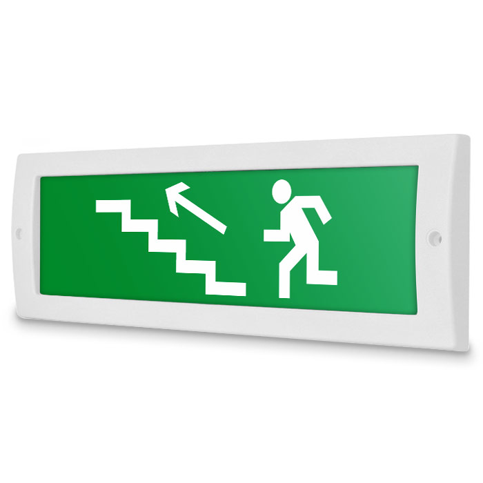 Световое табло «Направление к эвакуационному выходу по лестнице вверх (левосторонний)», Молния (12В) в Тюмени купить