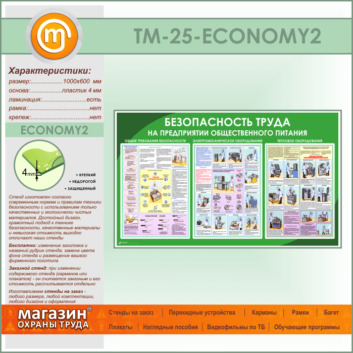 Стенд «Безопасность труда на предприятиях общественного питания» (TM-25-ECONOMY2) в Тюмени купить