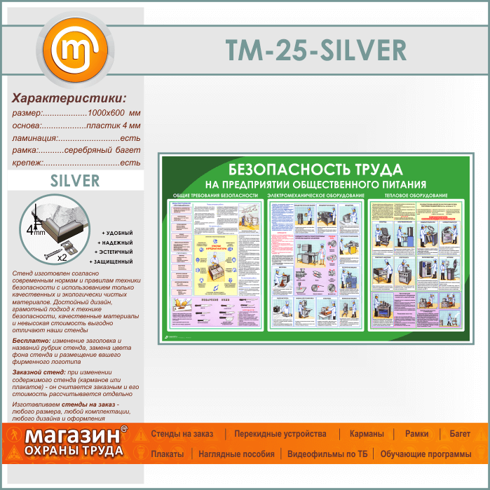 Стенд «Безопасность труда на предприятиях общественного питания» (TM-25-SILVER) в Тюмени купить