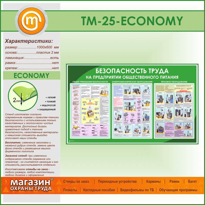 Стенд «Безопасность труда на предприятиях общественного питания» (TM-25-ECONOMY) в Тюмени купить