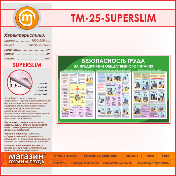 Стенд «Безопасность труда на предприятиях общественного питания» (TM-25-SUPERSLIM) в Тюмени купить