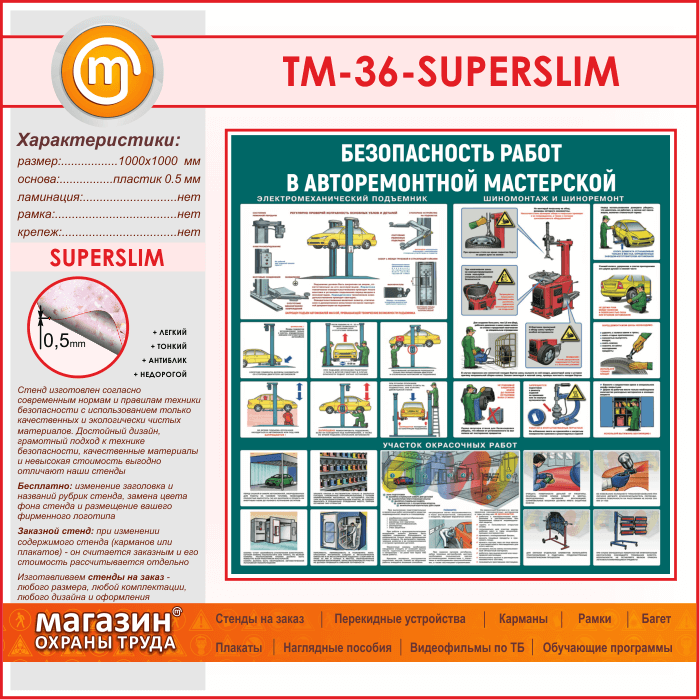 Стенд «Безопасность работ в авторемонтной мастерской» (TM-36-SUPERSLIM) в Тюмени купить