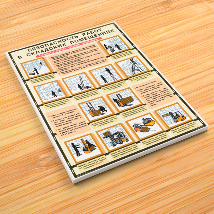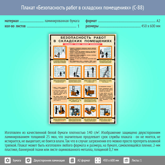 Плакат «Безопасность работ в складских помещениях» (С-88, ламинированная бумага, А2, 1 лист) в Тюмени купить