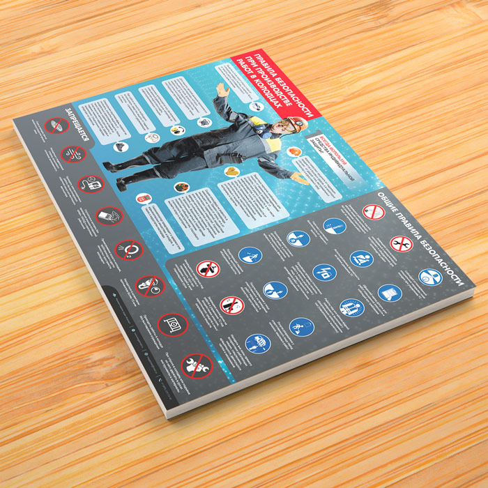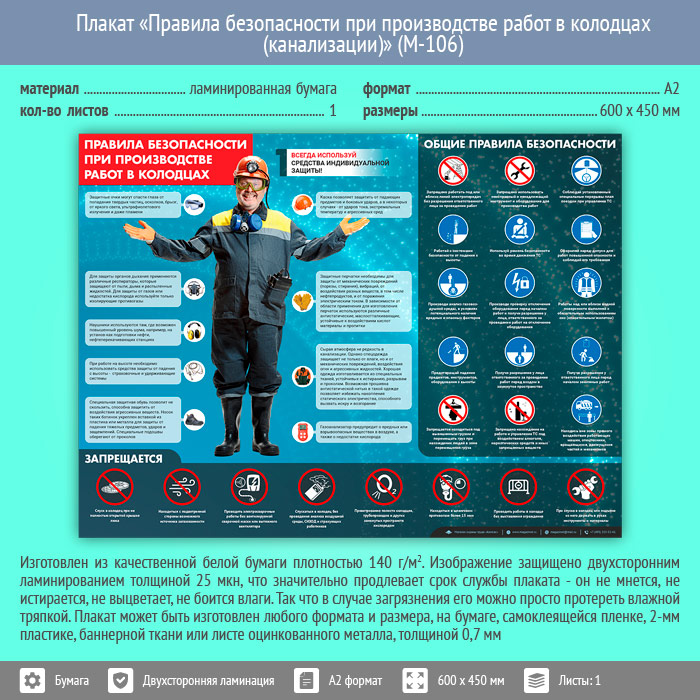 Плакат «Правила безопасности при производстве работ в колодцах (канализации)» (М-106, ламинированная бумага, А2, 1 лист) в Тюмени купить
