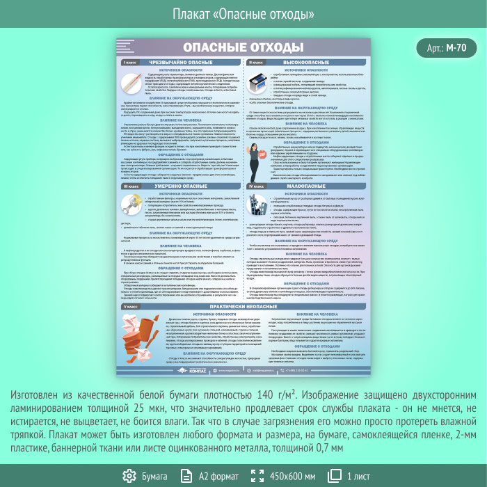 Плакат «Опасные отходы» (М-70, ламинированная бумага, А2, 1 лист) в Тюмени купить