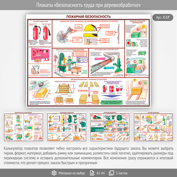 Плакаты «Безопасность труда при деревообработке» (С-17, 5 листов) в Тюмени купить