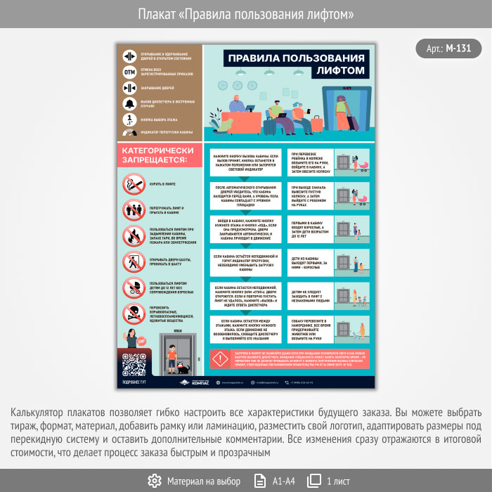 Плакат «Правила пользования лифтом» с QR (М-131, 1 лист) в Тюмени купить