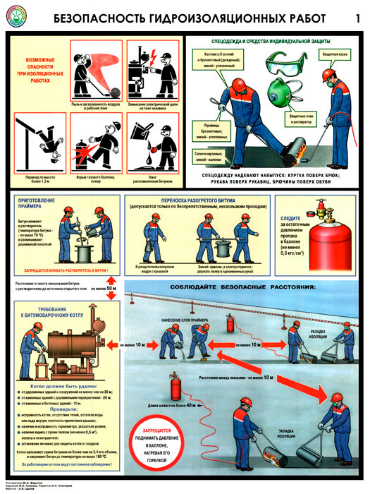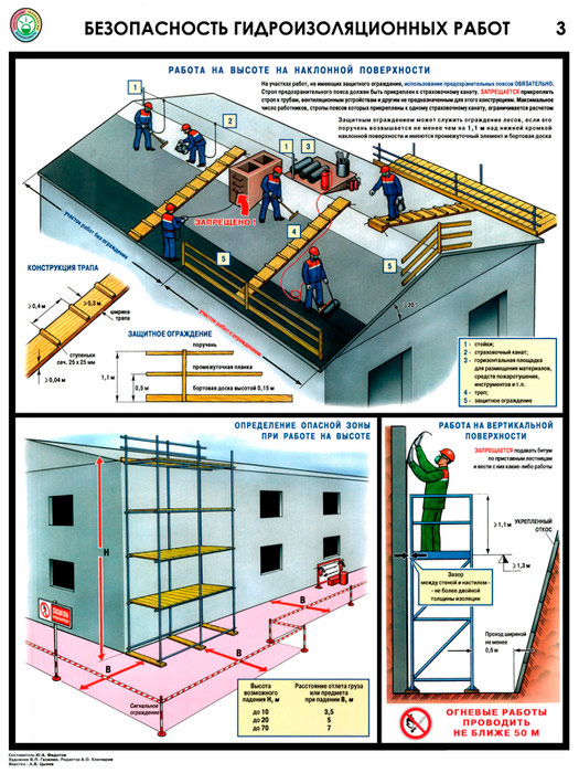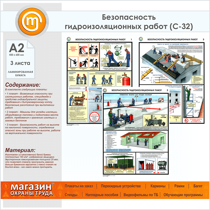 Плакаты «Безопасность гидроизоляционных работ» (С-32, ламинированная бумага, А2, 3 листа) в Тюмени купить