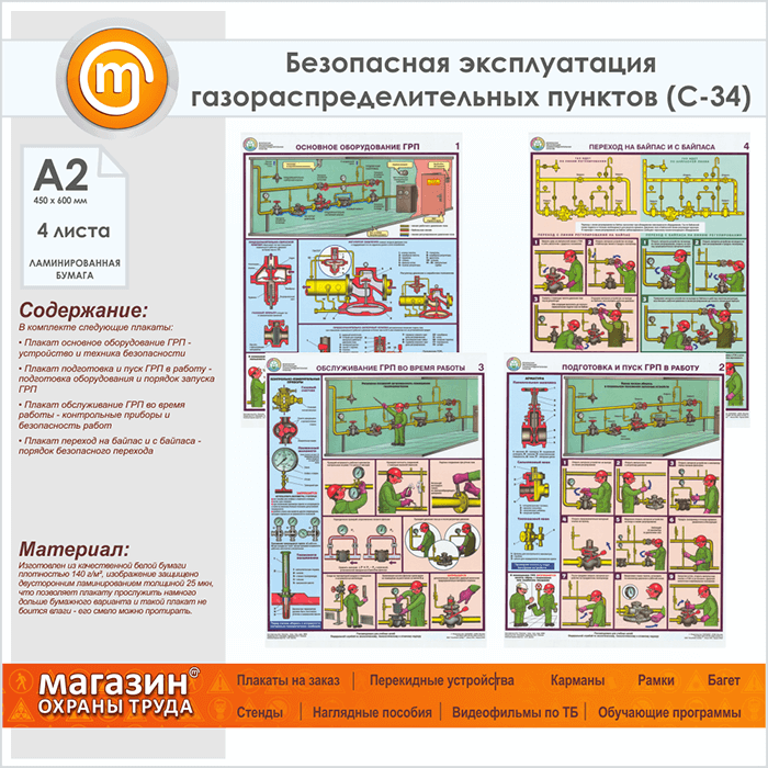 Плакаты «Безопасная эксплуатация газораспределительных пунктов» (С-34, ламинированная бумага, А2, 4 листа) в Тюмени купить