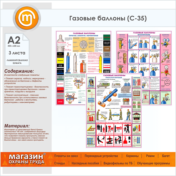 Плакаты «Газовые баллоны» (С-35, ламинированная бумага, А2, 3 листа) в Тюмени купить