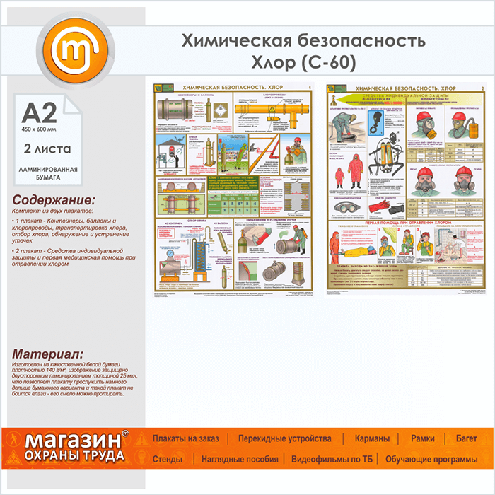 Плакаты «Химическая безопасность. Хлор» (С-60, ламинированная бумага, А2, 2 листа) в Тюмени купить