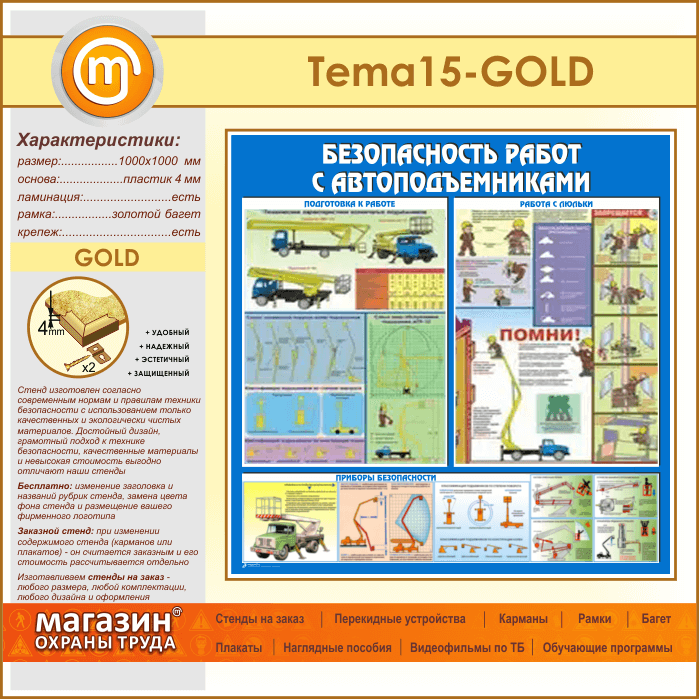 Стенд «Безопасность работ с автоподъемниками» (TM-15-GOLD) в Тюмени купить