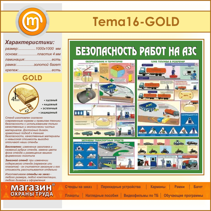 Стенд «Безопасность работ на автозаправочных станциях» (TM-16-GOLD) в Тюмени купить