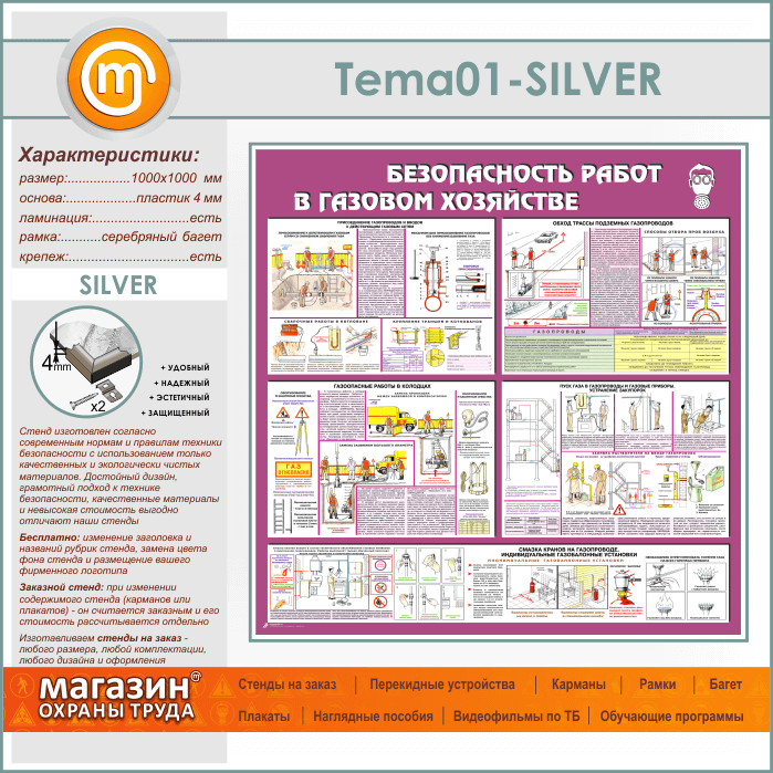 Стенд «Безопасность работ в газовом хозяйстве» (TM-01-SILVER) в Тюмени купить
