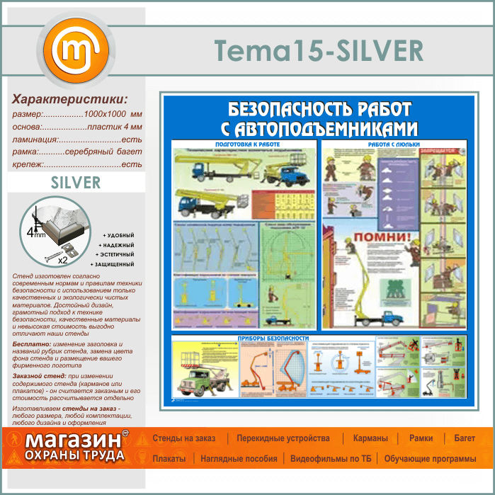 Стенд «Безопасность работ с автоподъемниками» (TM-15-SILVER) в Тюмени купить