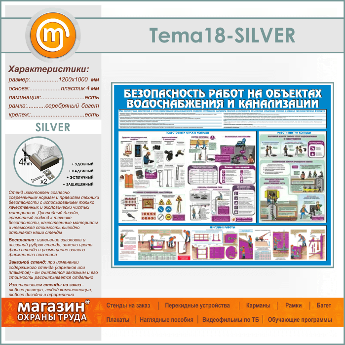 Стенд «Безопасность работ на объектах водоснабжения и канализации» (TM-18-SILVER) в Тюмени купить