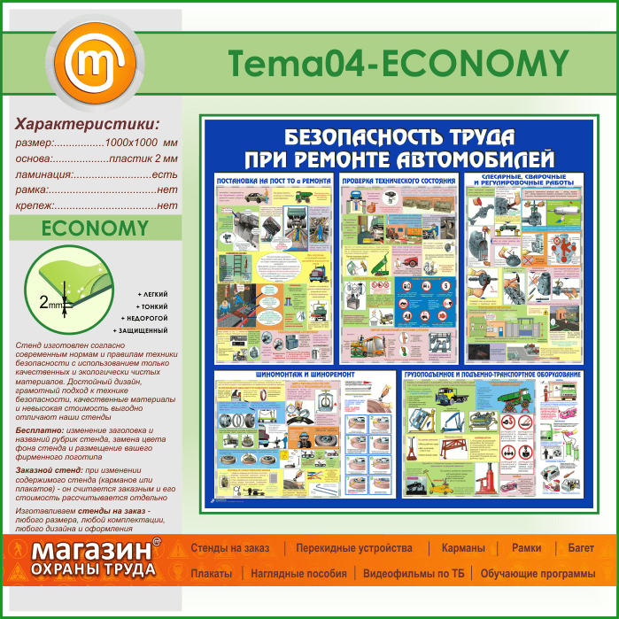 Стенд «Безопасность труда при ремонте автомобилей» (TM-04-ECONOMY) в Тюмени купить
