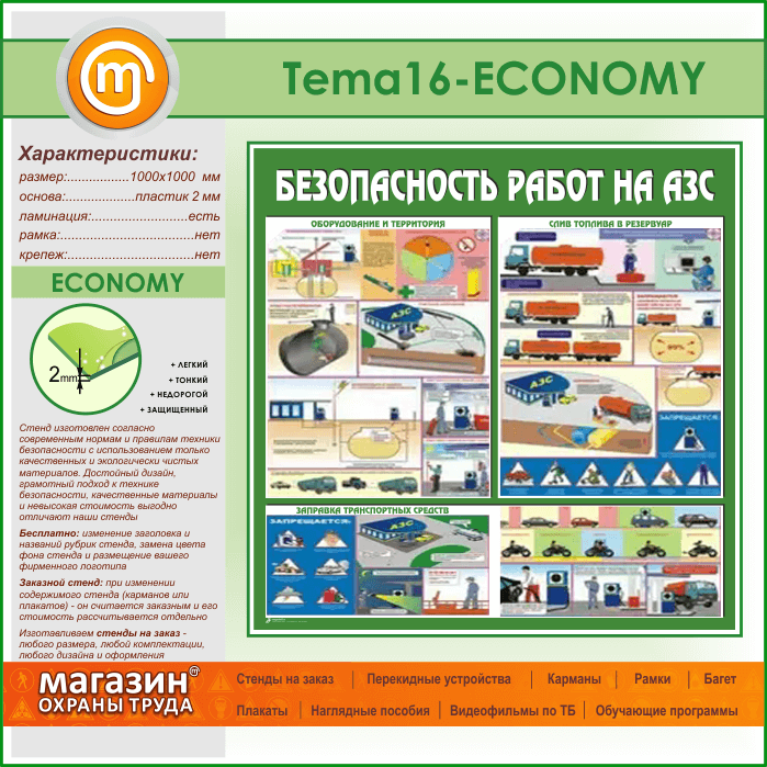 Стенд «Безопасность работ на автозаправочных станциях» (TM-16-ECONOMY) в Тюмени купить