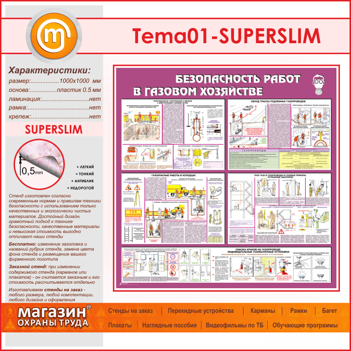 Стенд «Безопасность работ в газовом хозяйстве» (TM-01-SUPERSLIM) в Тюмени купить